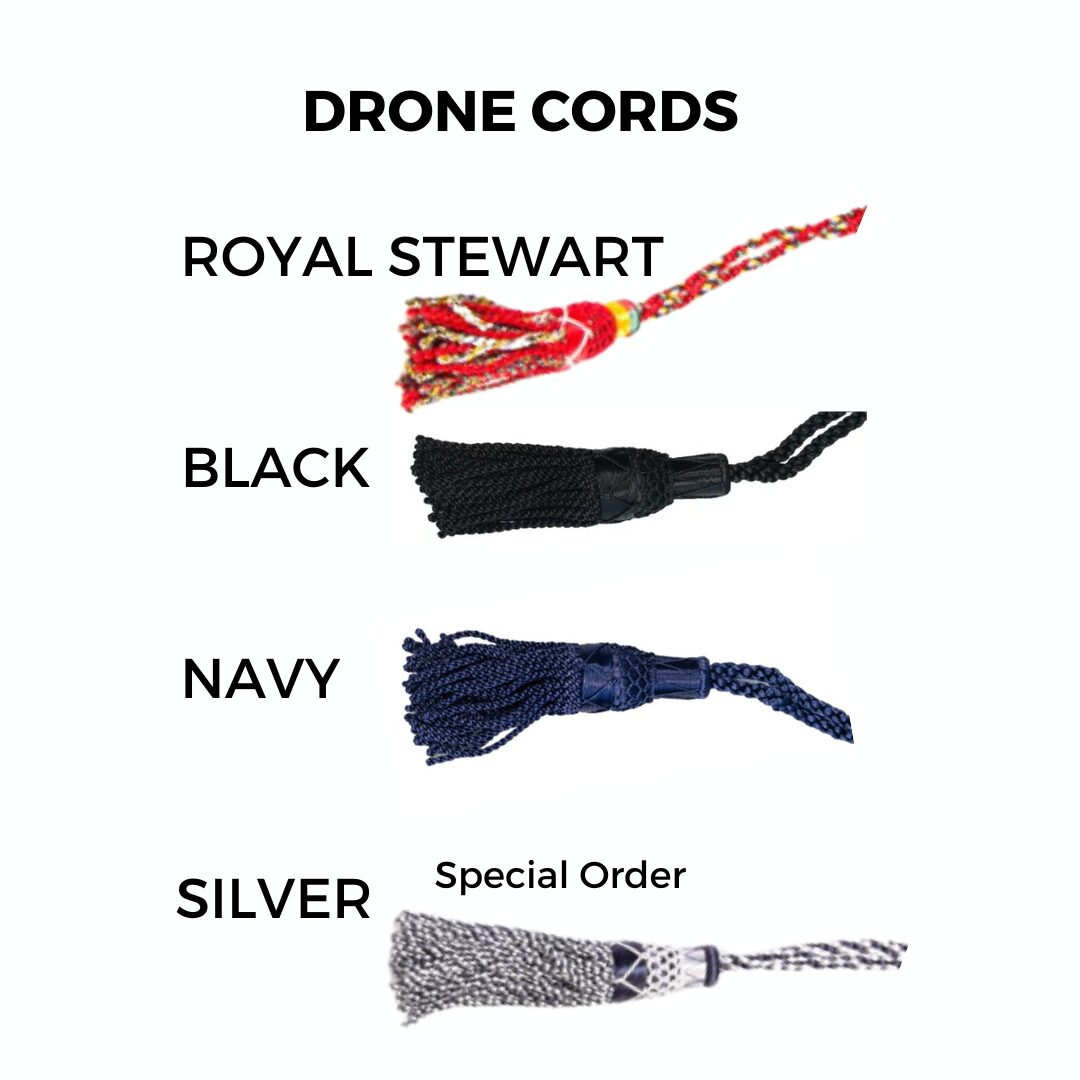 2. Basic: Includes everything from Sticks Only, plus the Bannatyne Hybrid Pipe Bag, Bannatyne Bottle Water Trap, Ezeedrone Regular Drone Reeds, Poly Infinity Pipe Chanter, Foundation Pipe Chanter Reed, Silk Drone Cords in four color choices. Fully assembled and ready to play.